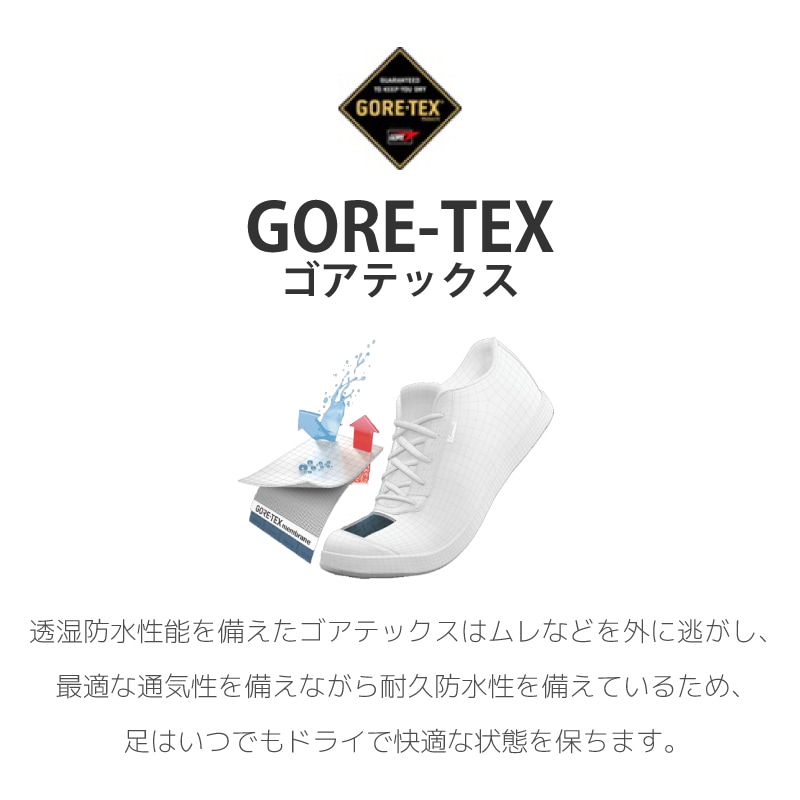 透湿防水性能を備えたゴアテックスはムレなどを外に逃がし、最適な通気性を