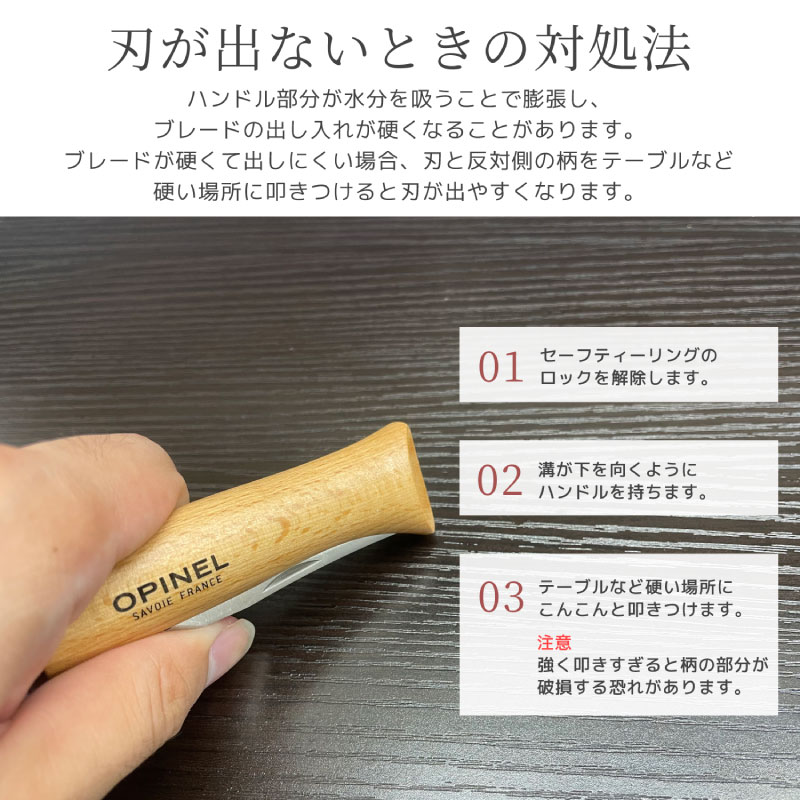 オピネルの創業以来変わらない、暖かみのある木のハンドルのデザイン。 シンプルで持ちやすく、アウトドアには欠かせない折りたたみナイフの定番商品です。