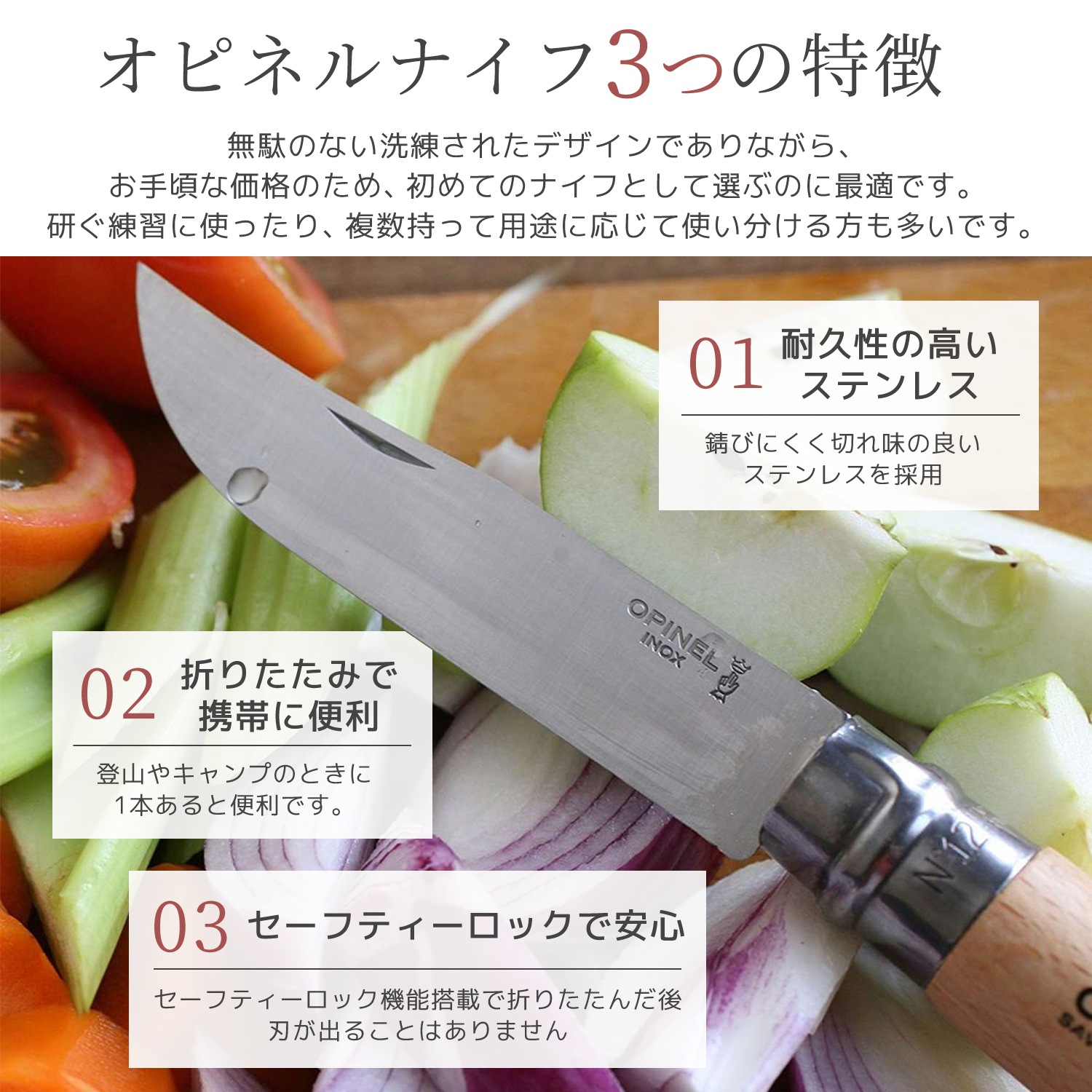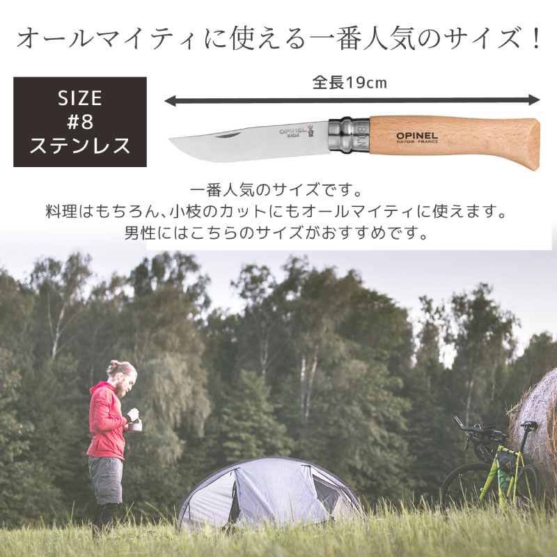 OPINEL オピネル 8 ナイフ ステンレス アウトドアナイフ フォールディングナイフ 折りたたみナイフ 木製ハンドル ステンレス ロック付き 簡単 キャンプ キャンプ用品 キャンプナイフ 調理 料理 ケース付き ホルスター ホルダー シース ギフト プレゼント